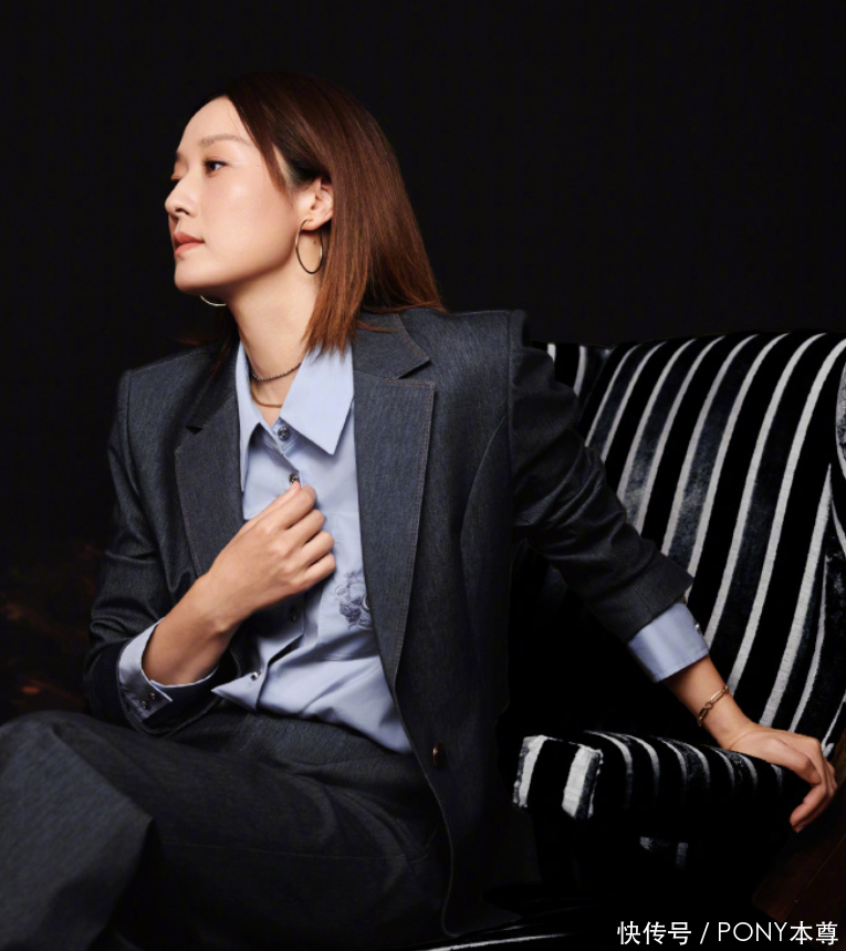 马伊琍年轻时期基本是超短发,衬托的五官精致立体!不过到了中年时期,留起了中长短发造型!搭配利落的黑色西装和蓝色衬衫,把成套西装穿出精英高管的气场!